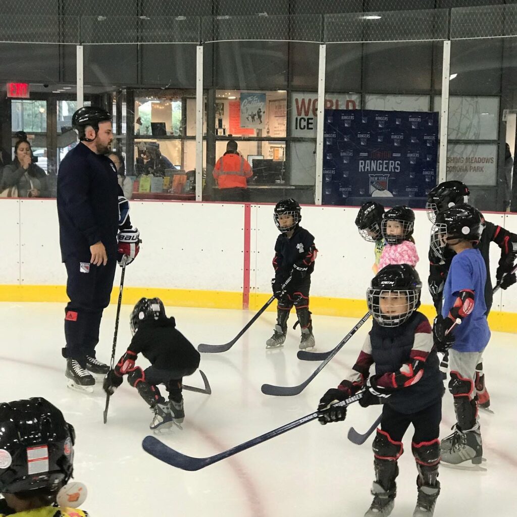 Rookie League – In this 10-week program, skaters translate newly-learned skills to game play during a weekly one-hour session. The program features one practice session and one cross ice game each week (cross-ice games reduce the ice surface, so skaters get more touches on the ice). Each skater receives his or her very own Junior Rangers Jersey.
