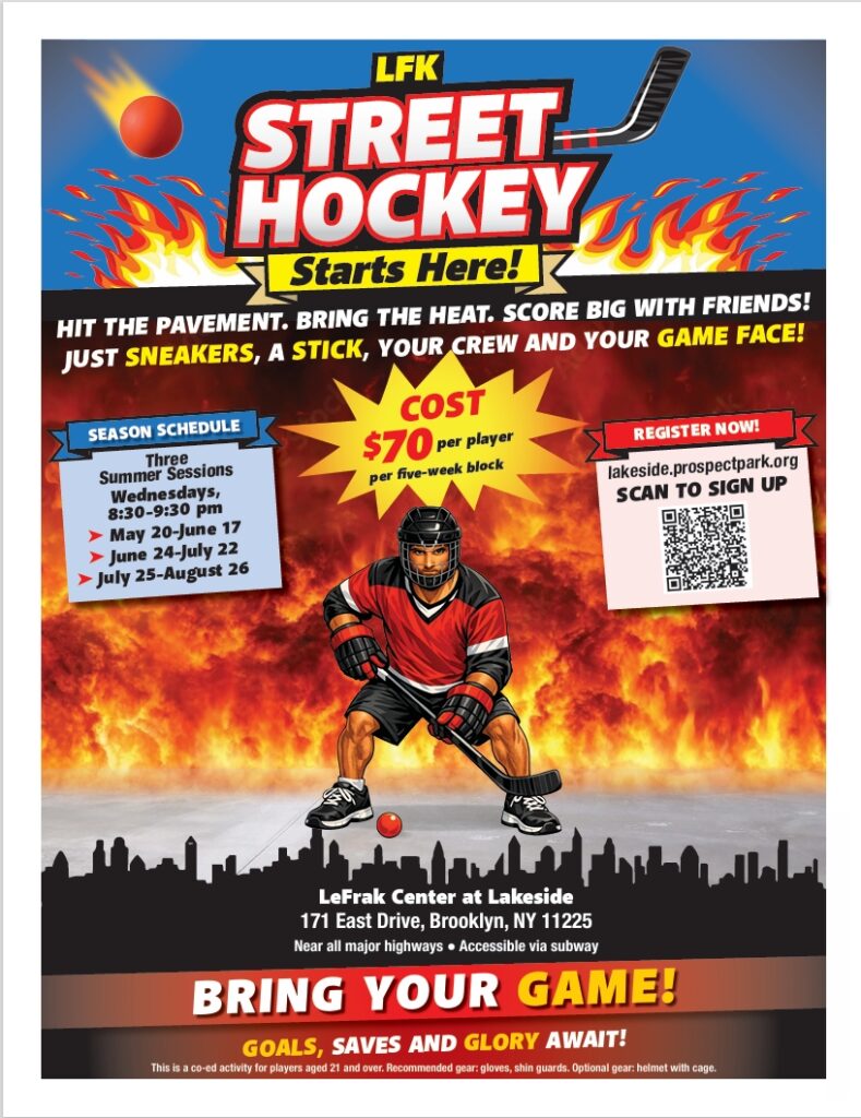 A fast-paced, informal version of hockey played on pavement with a ball and a stick, it’s fast, it’s gritty…pure pavement-level adrenaline. And it’s at Lakeside this Spring and Summer!